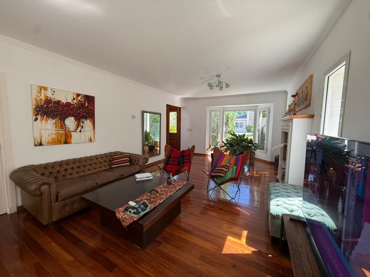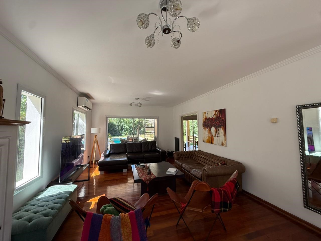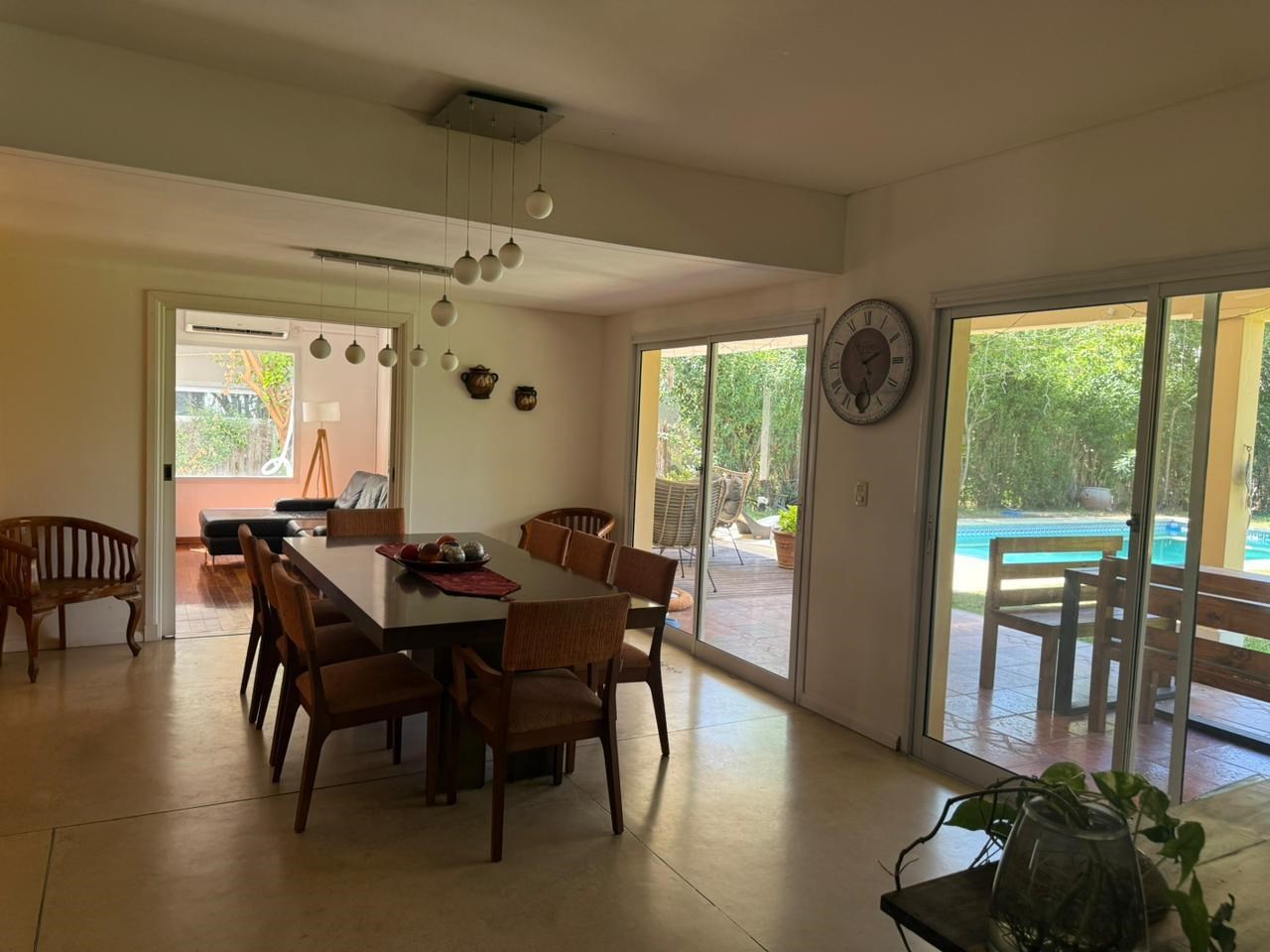 Alquiler en La Pradera I, Countries y Barrios Cerrados en Pilar Casa 220 m² Cubierta 3 dormitorios 17 años 3 baños 4 ambientes 2 cocheras Muy Bueno 800 m² Terreno Casa en Alquiler en Haras La Pradera, Pilar, G.B.A. Zona Norte Casa en venta Barrio La Pradera PB Hall con doble circulacion Cocina comedor diario con vista al jardin Family Toilette Living con hogar comedor Dormitorio con placard o escritorio Lavadero Dependencia de servicio con baño completo PA Hall de distribución 2 dormitorios con placard Baño completo que asiste a ambos dormitorios Suite principal con salida a balcón. Vestidor y baño con hidromasaje. Exterior Galería con parrilla y bacha. Sector de living exterior con mobiliario de madera Pileta revestida con venecitas Riego por aspersión Jardín parquizado y cerco consolidado. Detalles Pisos de madera en dormitorios y living Porcelanato en cocina y área de servicio Calefacción por losa radiante Posee aires acondicionado en todos los ambientes.