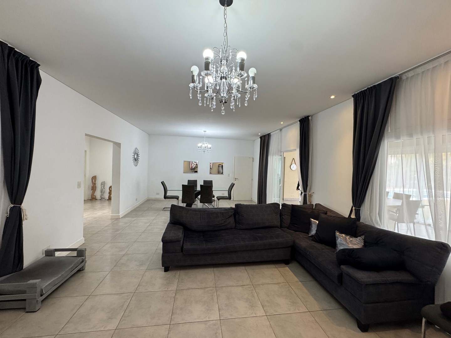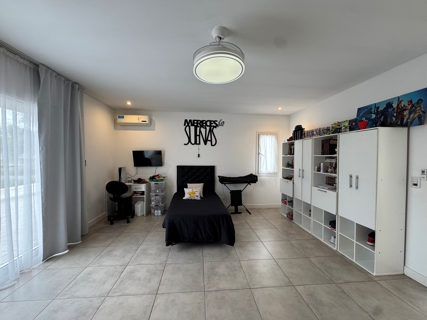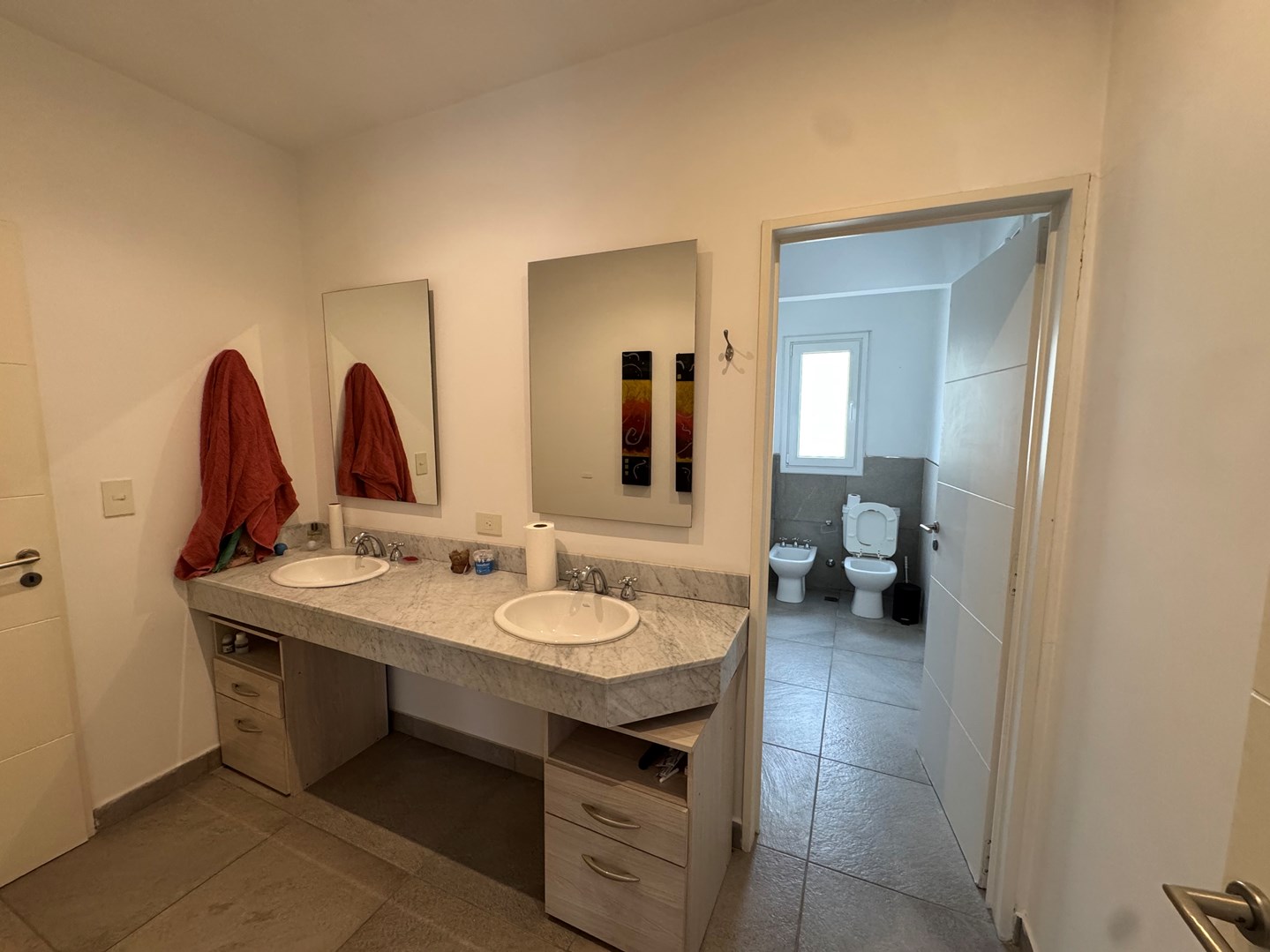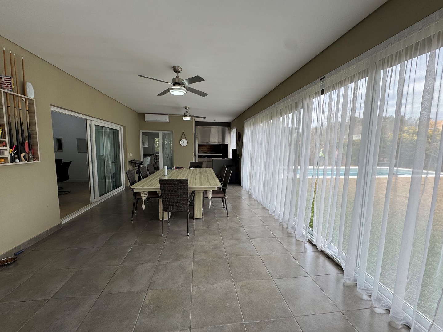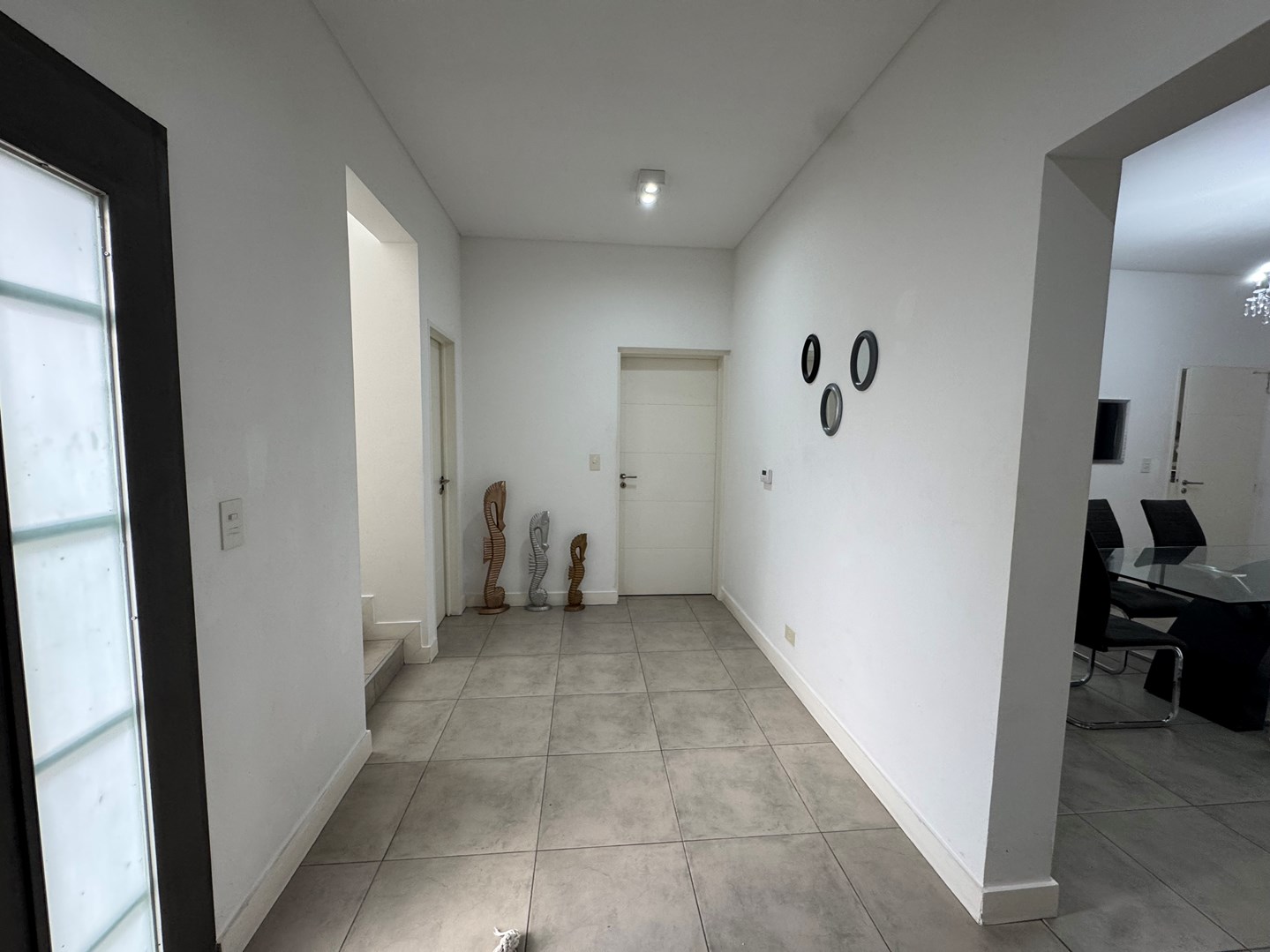 ALQUILER CASA BARRIO LOS PILARES. En planta baja toilette, habitación principal en suite con amplio vestidor. Living comedor, cocina completa, lavadero y dependencia. Cuarto y baño de servicio. Galería vidriada con parrilla, pileta climatizada, riego automático y un cuarto de guardado. Planta alta: Pasillo amplio para poder utilizar como escritorio, dos habitaciones conectadas con un baño amplio completo y terraza. La casa cuenta con aires frío calor, loza radiante, una cochera para 3 autos. El barrio cuenta con seguridad 24 hs, canchas de tennis, club house, canchas de futbol, pileta, sum, gimnasio y plazas de juegos. SIN AMOBLAR. ACEPTA MASCOTAS. DISPONIBLE A PARTIR DEL 1 DE MARZO 2026