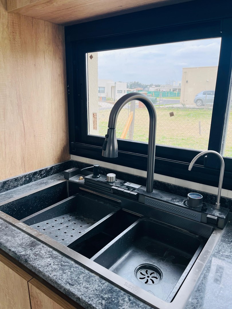 En venta Casa en Santa Elisa, Pilar del este. En lote interno. En planta baja cuenta con cocina comedor - living- baño visitas que se comunica con la galería. Dormitorio con baño en suite - sector de lavadero cerrado y lugar extra de guardado bajo escalera. Amplia galeria con parrilla y mesada En Planta alta 2 dormitorios con placard y baño compartido, terraza. pre instalaciones de aires acondicionado - losa radiante con caldera dual.