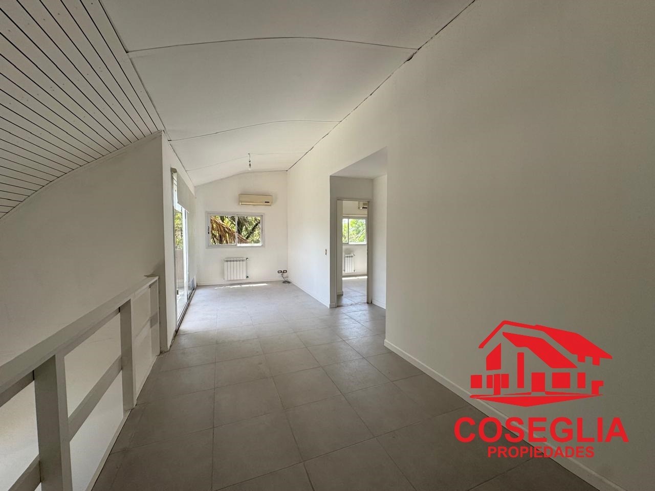 Departamento en Alquiler – 3 Dormitorios + Playroom – Cochera Cubierta – Villa Morra Departamento en dos plantas, amplio, moderno y muy luminoso, ubicado en Villa Morra. En planta baja ofrece un cómodo living comedor con cocina integrada, toilette de recepción. Cuenta con calefacción por radiadores y caldera dual, garantizando gran confort térmico. En planta alta se encuentran los 3 dormitorios con aire acondicionado: • Dormitorio principal en suite, con vestidor. • Dos dormitorios adicionales, ambos con placard. Además, un gran playroom, ideal para escritorio, sala de TV o espacio de estudio. Propiedad funcional, bien mantenida y con excelente distribución. Una opción ideal para quienes buscan comodidad, amplitud y una ubicación estratégica a pasos de Panamericana, en Villa Morra, Pilar. CMSM 2480
