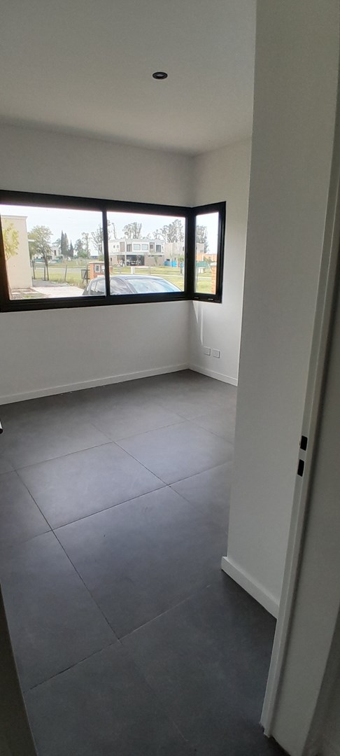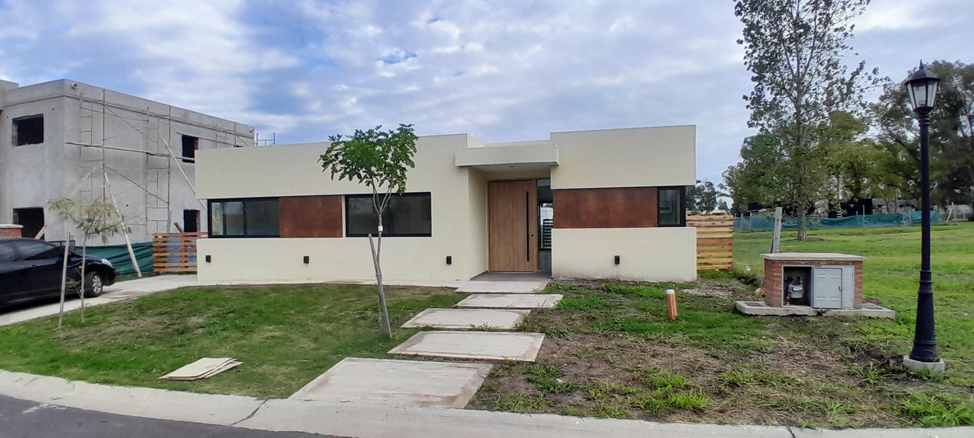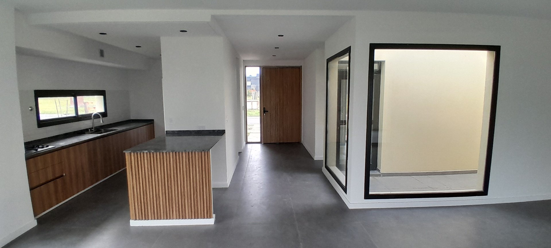 Hermosa casa a estrenar en barrio Santa Sofia. PILAR DEL ESTE. Desarrollada en una planta. 1 dormitorio en suite y vestidor 2 dormitorios con baño compartido Amplio Living-comedor Cocina con horno anafe y bacha inteligente Pulmón de luz para area verde Lavadero con mesada y caldera dual Losa radiante y pre instalación de aires Galería con parrilla y bacha. Lote interno El barrio cuenta con sum. Cancha de fútbol sintético. Ca cha de tenis y padel Seguridad 24hs Doble cerco. Cualquier inquietud no dudes en contactarnos