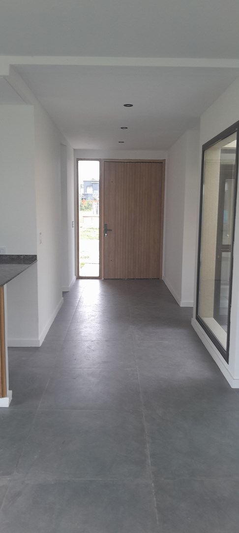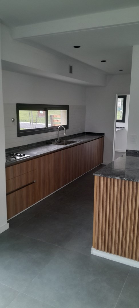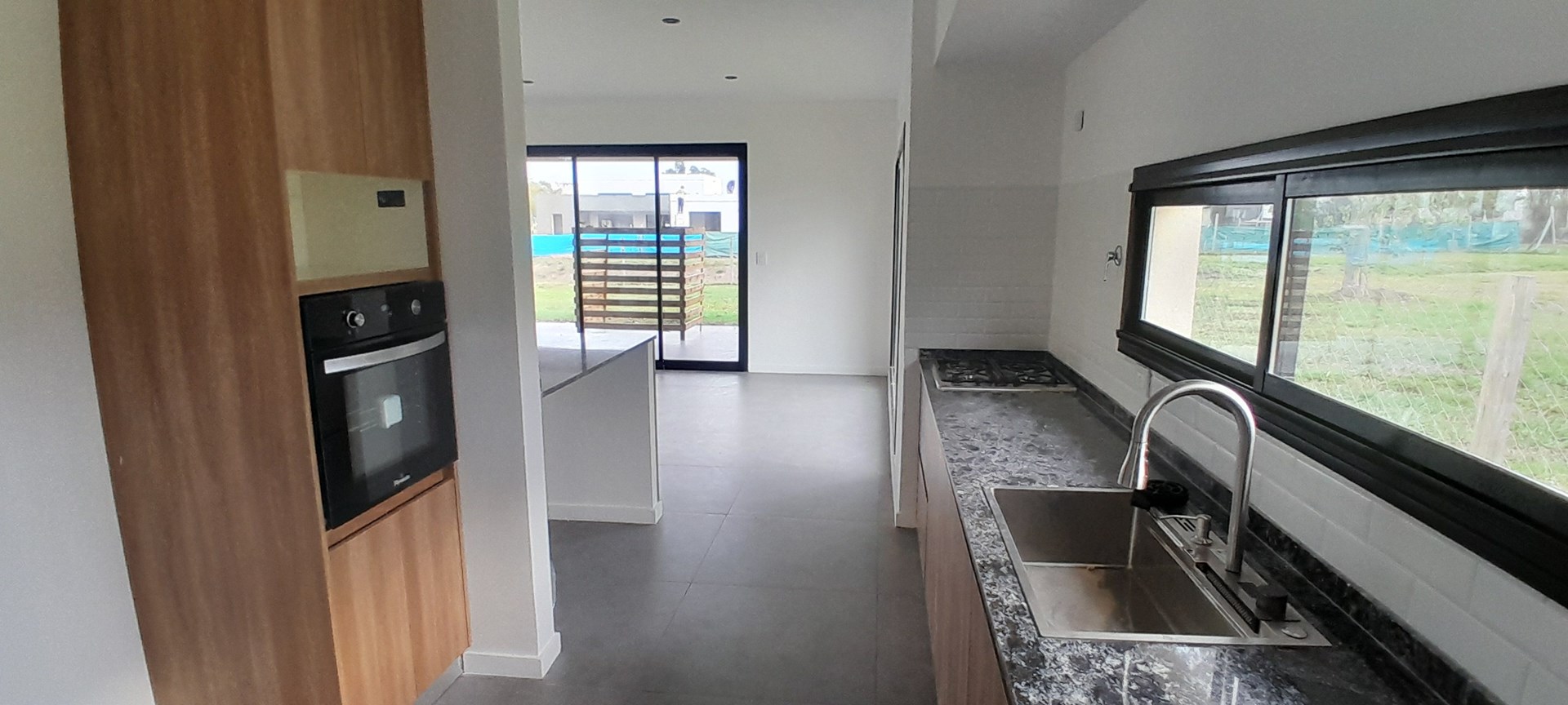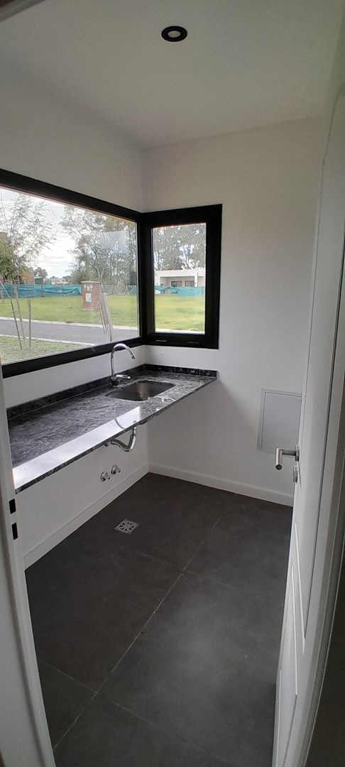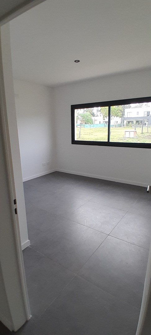 Hermosa casa a estrenar en barrio Santa Sofia. PILAR DEL ESTE. Desarrollada en una planta. 1 dormitorio en suite y vestidor 2 dormitorios con baño compartido Amplio Living-comedor Cocina con horno anafe y bacha inteligente Pulmón de luz para area verde Lavadero con mesada y caldera dual Losa radiante y pre instalación de aires Galería con parrilla y bacha. Lote interno El barrio cuenta con sum. Cancha de fútbol sintético. Ca cha de tenis y padel Seguridad 24hs Doble cerco. Cualquier inquietud no dudes en contactarnos