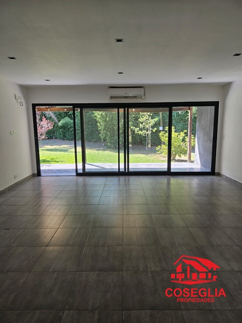 Barrio Manzanares Chico. Living-comedor con aire acondicionado , 1 toilette, cocina separada , lavadero , 1 dormitorio en suite con vestidor y baño completo , 1 dormitorio con vestidor y aire acondicionado , tercer dormitorio , baño completo , galeria semibubierta y jardin , garaje semicubierto para dos autos . Todo electrico , caleffacion por placas en todos los ambientes . El Barrio tiene Piscina - House - SUM - Juegos infantiles - Canchas deportivas - El Barrio posee todos los servicios CMSM 2480