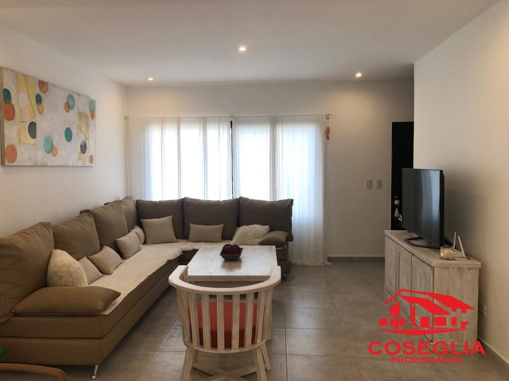 Excelente ubicación, sobre colectora panamericana, km 51,5. En breve con posibilidad también de ingresar al barrio por Ruta 8. A un puente del shopping Palmas del Pilar y Torres del Sol. A metros del supermercado Chango Mas y a metros de paradas de colectivo, sobre panamericana. El barrio cuenta con Vigilancia, Sum, Parrillas, Cancha de Paddle, Cancha de futbol, Plaza de niños, Cancha de Futbol Tenis y Pileta. Casa apariada, tipo dúplex con entrada de auto, galería, parrilla, jardín y espacio para construir pileta. Terreno de 6,50 x 22 mtrs de largo Entrada de autos de 6,50 x 5 Hall de entrada con amplio toilette de recepción. Living comedor de 4 x 7,50, cocina comedor diario Galería con parrilla de 6,50 x 3,50, y espacio de guardado de 3,50 metros. Jardín de 6,50 x 8 En planta alta, se encuentran 3 dormitorios y baño de niños. Dormitorio principal de 4x3, baño en suite, y 2 vestidores independientes. Un vestidor de 6 metros lineales y gran altura para baulera y otro vestidor independiente de 3 metros lineales con espacio amplio de baulera. Segundo dormitorio de Niños, con vestidor de 5 metros lineales con baulera, y tercer dormitorio de niños con vestidor de 3 metros lineales con gran altura para baulera. Valor de la propiedad con muebles , 900.000 pesos , por mes . Dos meses de depósito . Preinstalación de Aire Acondicionados en todos los ambientes. Casa impecable, lista para mudarse.CMSM2480