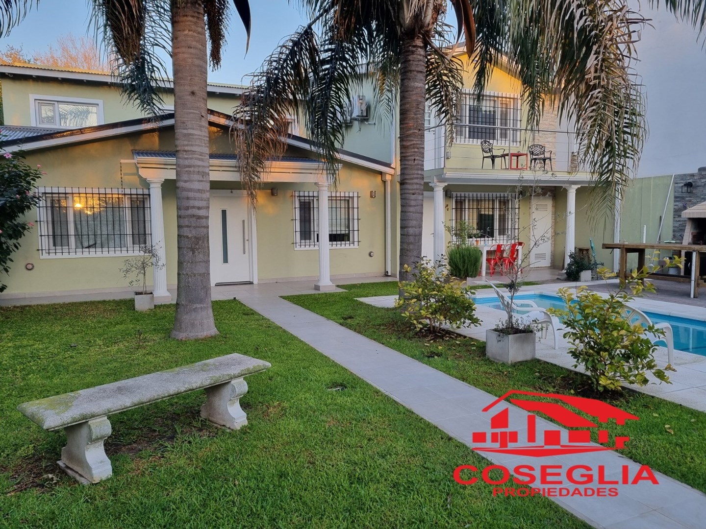 Casa de dos plantas , con pileta 2 x 5,5 , profundidad 1,20 . Parrilla . Hidromasaje . Espacio guardacoche , techado para dos vehìculos . Jardìn al ingresar a la casa . Dos termotanques , uno elèctrico , el otro a gas , de 80 litros . Living comedor cocina , lavadero a parte . Habitaciòn en suite con vestidor y toilette con ducha . Bajo escalera con espacio de guardado . Planta alta , habitaciòn en suite con dos placares( baño con mampara de vidrio e hidromasaje ) . , salida al balcòn . Habitaciòn con placard , baño y bañera . Altillo 12 m2 . Equipos de aire acondicionado , inverter , frìo / calor . Calefacciòn tiro balanceado , 5 estufas de 3.000 calorìas c/u . Sistema de alarma y detecciòn de movimiento y apertura de puertas . Agua corriente de red .CMSM2480