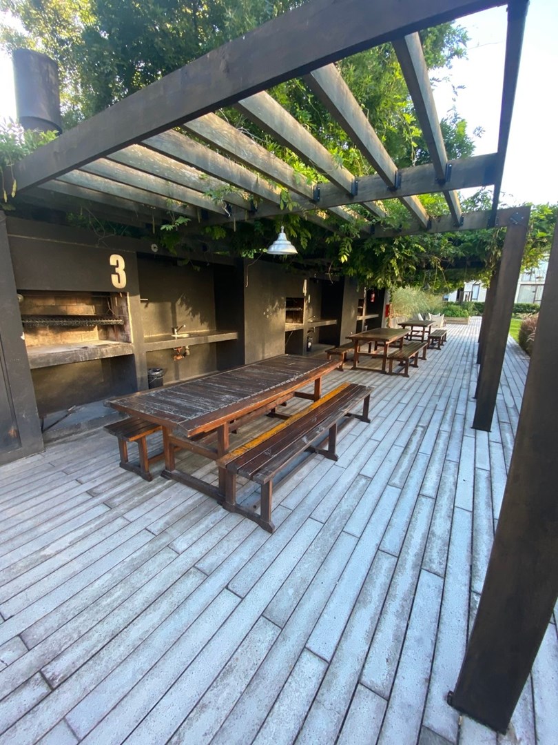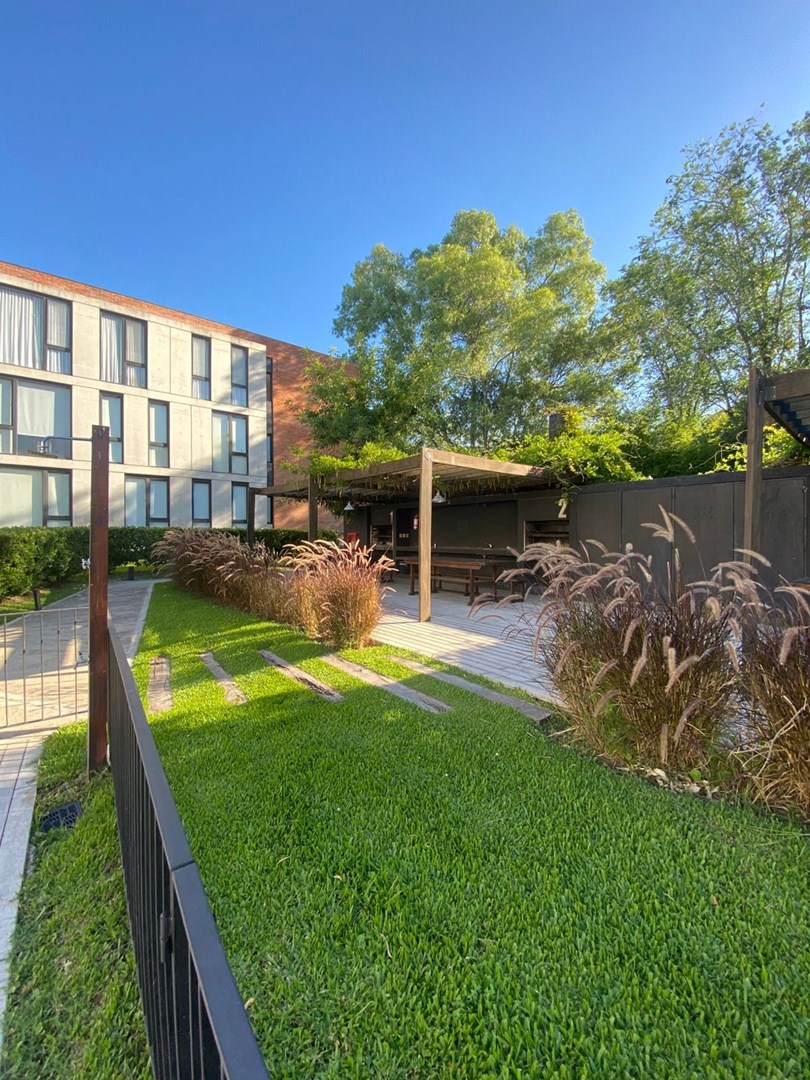 MONOAMBIENTE CON DIVISION Y BALCON EN CLUB BAMBOO. Cocina abierta con anafe eléctrico, aire acondicionad e interior de placard. El complejo cuenta con espacios verdes, pileta cubierta climatizada, pileta descubierta, vestuarios, Gym, Sala de cine, Espacio Co-Work, Laundry y vigilancia 24 hs. El departamento cuenta con espacio guardacoche dentro del complejo. APTO CREDITO
