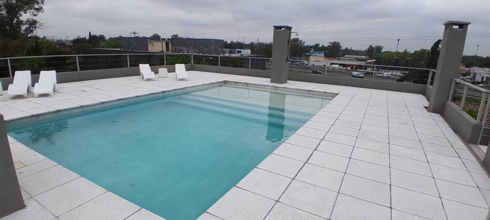 Hermoso departamento de 2 ambientes en condominio- PILAR NORTE - Cuenta con una ubicación excelente. Está ubicado en el Km 50 de la colectora Este del Ramal Pilar a 1 cuadra de Panamericana. . A tan del Shopping Torres del Sol y Village Cines , Centro comercial Palmas del Pilar, Sanatorio las Lomas, Proximidad al centro de Pilar. Living comedor y cocina integrada con Horno y cocina , calefacción central. . Un dormitorio con placard y un baño completo. Balcón. Una cochera y una baulera. Amenities: SUM - Zona de parrillas - Terraza - Sala - Pileta con solárium -Baños para pileta - Espacio de coworking - Bauleras -Cocheras. CMSM 2480
