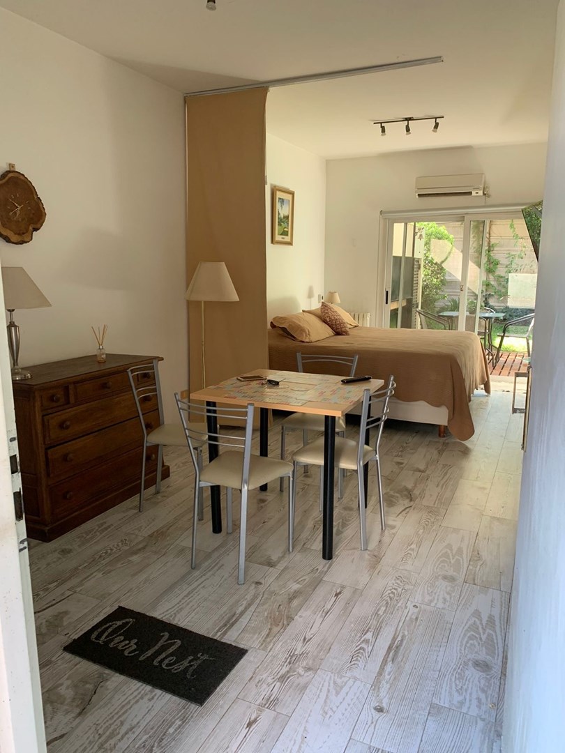 Departamento Ubicado en El Barrio Cerrado de Las Mercedes, a metros de la Panamericanismos KM53 frente al shopping Champagnat. Seguridad 24 hs WIFI y parrilla particular. Deck exterior con parque Zonas comunes con importante pileta de natación con solarium y reposeras , gimanasio, zoom , laundry. Cancha de tenis ,cancha de futbol . House con restaurant, desayuno,almuerzo y cena con delivery al depto.